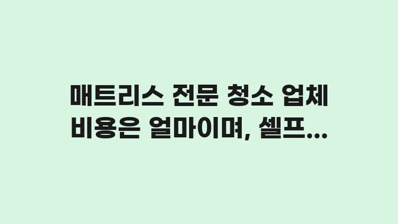 이 글은 가성비/절약형 라이프스타일과 데이터 기반 분석 페르소나의 시각으로, 매트리스 전문 청소 업체 비용의 합리성을 판단할 수 있도록 객관적인 분석 프레임을 제공합니다. 단순히 ‘깨끗해진다’를 넘어, 가격 구조, 청소 방식의 차이, 그리고 연간 비용 효율성을 상세히 파헤쳐 합리적인 의사결정을 돕겠습니다.