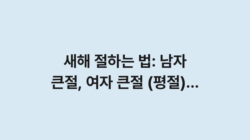 고지 문구: 본 글은 2026년 12월 기준으로 작성되었으며, 일반적인 정보를 바탕으로 합니다. 개인의 상황에 따라 결과가 다를 수 있으며, 중요한 의사결정(의학, 금융, 법률 등) 전에는 반드시 전문가와 상의하시기 바랍니다. 절하는 방법 및 예절 등은 전통 예법을 바탕으로 하되, 집안의 문화에 따라 다를 수 있습니다.