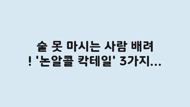 고지 문구: 본 글은 2025년 12월 기준으로 작성되었으며, 일반적인 정보를 바탕으로 합니다. 개인의 상황에 따라 결과가 다를 수 있으며, 중요한 의사결정(의학, 금융, 법률 등) 전에는 반드시 전문가와 상의하시기 바랍니다. 논알콜 칵테일 레시피 및 맛은 개인의 취향과 재료의 품질에 따라 다를 수 있습니다.