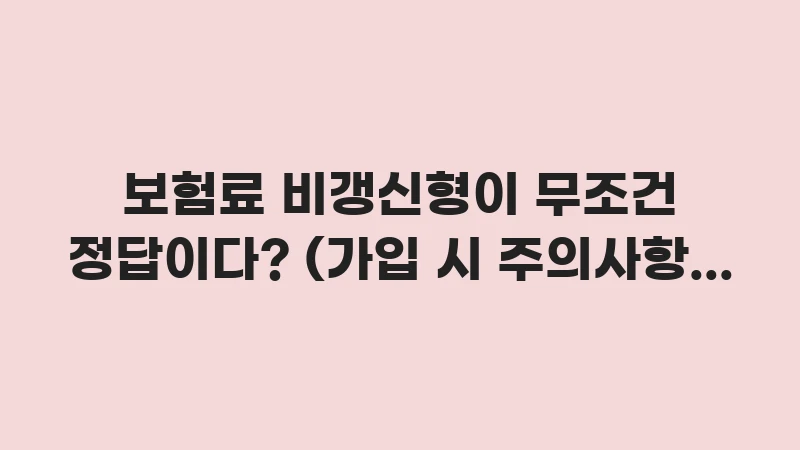 이 글은 보험료 비갱신형을 가입할 때 절대 놓치지 말아야 할 3대 함정을 집중적으로 공개합니다. 특히 납입 기간 설정 실수와 순수 보장형의 중요성을 강조하며, 비갱신형을 가장 효율적으로 가입하여 보험료 절약과 안정성 두 마리 토끼를 모두 잡는 가입 시 주의사항 3가지를 제시하겠습니다. 갱신형 vs 비갱신형 완벽 비교 분석을 마친 당신이라면, 이제 이 함정들을 피해 최적의 포트폴리오를 만들 수 있습니다.