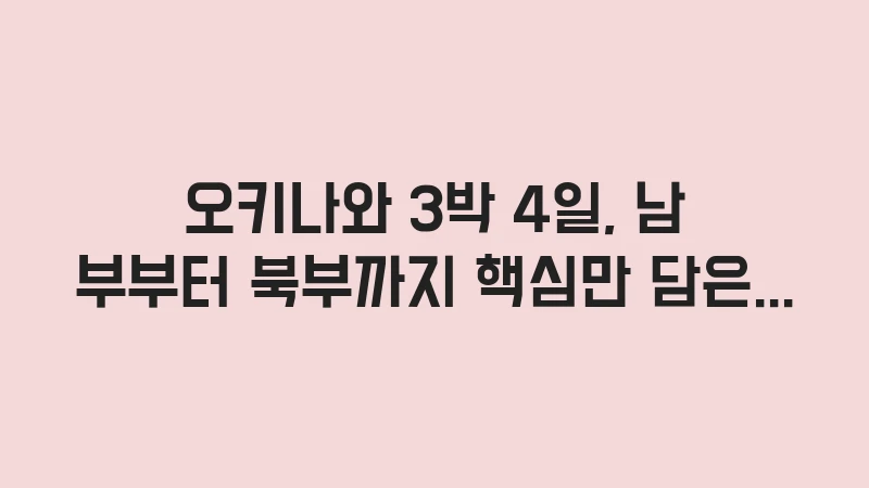 오키나와 3박 4일, 아직도 동선 때문에 고민이신가요? 남부, 중부, 북부의 핵심 명소를 동선 낭비 없이 완벽하게 둘러보는 추천 코스를 제시합니다. 가족, 커플 등 여행 스타일에 맞는 코스 짜는 법과 현지인처럼 즐기는 팁까지, 이 가이드 하나로 여행 계획의 모든 고민을 끝내세요.