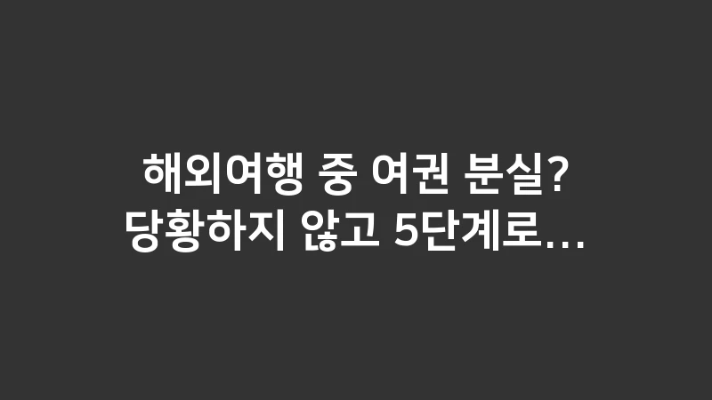 해외여행 중 여권 분실, 상상만 해도 아찔한 상황이지만 누구에게나 일어날 수 있습니다. 현지 경찰 신고부터 재외공관 방문, 긴급여권 발급까지 가장 빠르고 정확한 5단계 위기관리 가이드를 확인하고 더 이상 당황하지 마세요.
