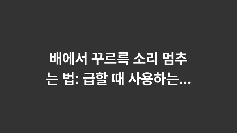 배에서 꾸르륵 소리 멈추는 법, 급할 때 어떻게 하시나요? 중요한 순간 민망한 장음을 즉각 잠재우는 응급 조치법과 약국에서 쉽게 구할 수 있는 효과적인 상비약 리스트를 전문가의 시선으로 꼼꼼히 정리했습니다. … 더 읽기.