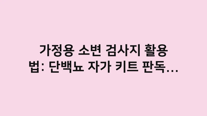 가정용 소변 검사지 활용법을 통해 단백뇨 자가 키트 판독법과 정확도를 높이는 팁을 상세히 분석했습니다. 병원에 가기 전 집에서 간편하게 건강을 체크하는 법과 주의사항을 정리했으니 소변 거품이나 색깔 변화로 걱정된다면 지금 바로 이 가이드를 확인하세요. … 더 읽기.