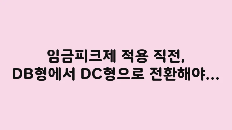 임금피크제 DB형에서 DC형 전환은 노후 자산을 지키는 필수 전략입니다. 임금피크제 적용 직전에 DC형으로 전환해야 하는 이유와 최적의 전환 시기, 그리고 퇴직금 계산 시 손해를 막는 구체적인 노하우를 상세히 안내합니다. … 더 읽기.