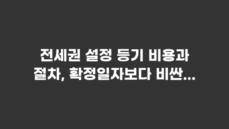 전세권 설정 등기 비용과 절차를 확정일자 비용과 비교 분석합니다. 확정일자보다 비싼 이유와 등기 절차, 필요 서류 및 물권적 권리 확보의 장단점을 15년 경력 부동산 전문가가 명쾌하게 정리했습니다. … 더 읽기.
