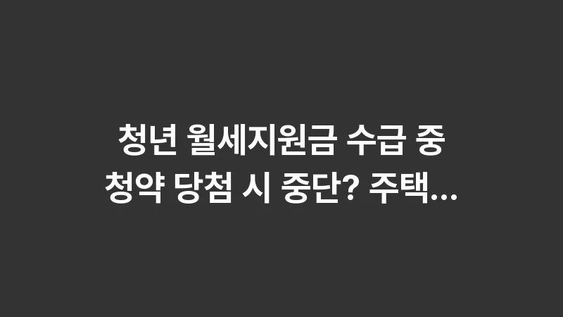 청년 월세지원금 수급 중 청약 당첨 시 중단 여부와 대처법: 당첨일 vs 계약일 기준, 주택 소유 기준 완벽 정리 … 더 읽기.