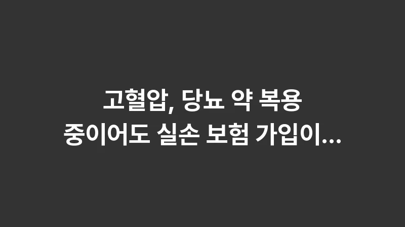 고혈압, 당뇨 약 복용 중이어도 실손 보험 가입이 가능한가요?