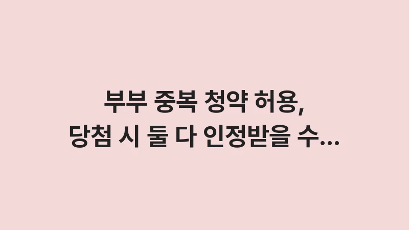 부부 중복 청약 허용, 당첨 시 둘 다 인정받을 수 있는 조건은? 신혼부부의 청약 기회를 확대하는 부부 중복 청약 허용 규정을 완벽 분석했습니다. 특별공급과 일반 공급 중복 청약 가능 여부와 중복 당첨 시 처리 규정을 확인하세요. … 더 읽기.