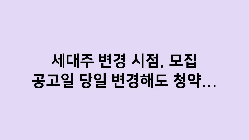 세대주 변경 시점, 모집 공고일 당일 변경해도 청약 자격 유지되나요? 청약 자격을 결정하는 세대주 변경 및 혼인신고 시점의 ‘골든타임’을 완벽하게 정리했습니다. 공고일 당일 변경의 위험성과 부적격 당첨을 막는 핵심 전략을 확인하세요. … 더 읽기.