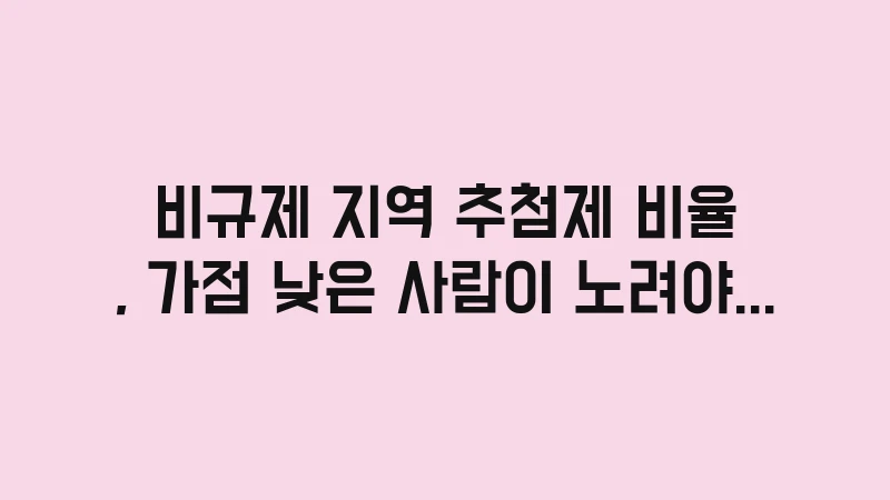 비규제 지역 추첨제 비율, 가점 낮은 사람이 노려야 할 곳은 어디인가? 일반 공급 추첨제 비율을 40%에서 70%까지 높이는 비규제 지역 공략법을 완벽 분석했습니다. 2030세대가 내 집 마련에 성공할 수 있는 필승 전략을 확인하세요. … 더 읽기.