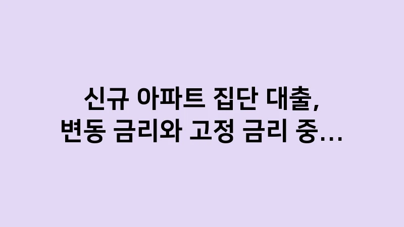 신규 아파트 집단 대출, 변동 금리와 고정 금리 중 대세는 무엇인가? 집단 대출의 금리 유형별 장단점, 대출 선택 시점의 중요성, 그리고 금리 인상기 최적 전략을 상세히 분석했습니다. 150자 ~ 160자 내외 … 더 읽기.