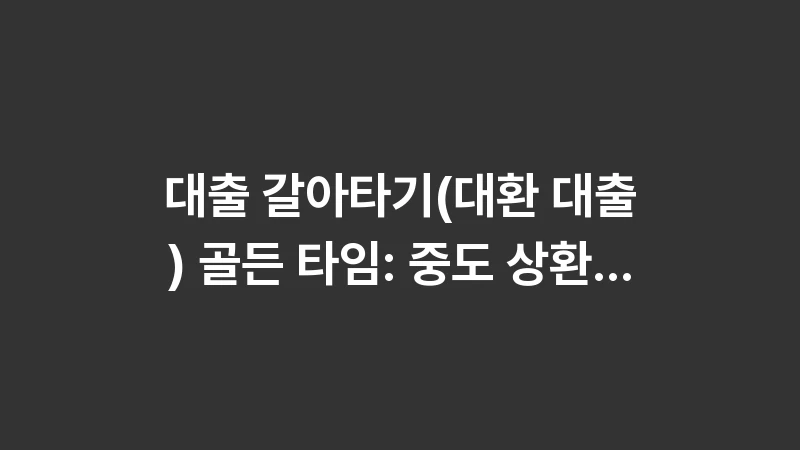 대출 갈아타기(대환 대출) 골든 타임: 중도 상환 수수료 면제 조건과 절약 금액 계산. 대환 대출 시기와 이자 절감액, 그리고 손해 없이 갈아타는 3가지 체크리스트를 분석했습니다. 150자 ~ 160자 내외 … 더 읽기.