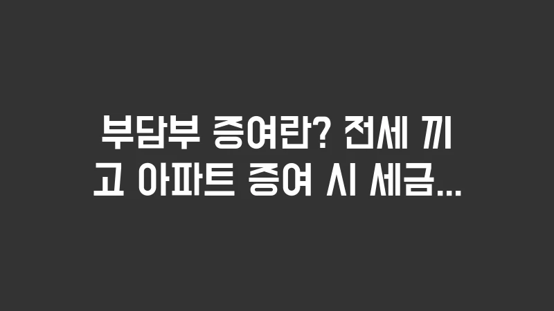 부담부 증여 세금 절약 효과 분석. 전세 끼고 아파트 증여 시 증여세와 양도소득세 계산법, 그리고 채무 인수 시 증여세 과세표준 절감 전략을 상세히 안내합니다. … 더 읽기.