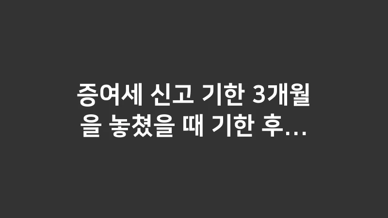 증여세 신고 기한 3개월을 놓쳤을 때 기한 후 신고와 가산세율 분석. 무신고 가산세, 납부 지연 가산세율 계산법과 국세청 조사 통보 전 자진 신고 시의 감면 혜택을 안내합니다. … 더 읽기.