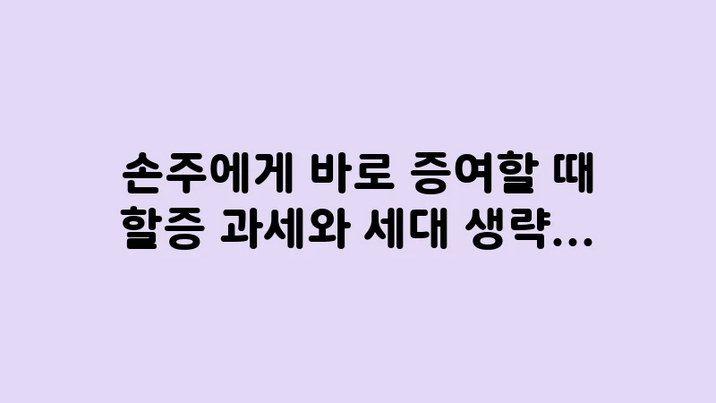 손주에게 바로 증여할 때 할증 과세와 세대 생략 증여 장단점 분석. 30% 할증 과세에도 불구하고 이 전략이 절세에 유리한 이유와 세대 생략 증여 시의 필수 체크리스트를 안내합니다. … 더 읽기.
