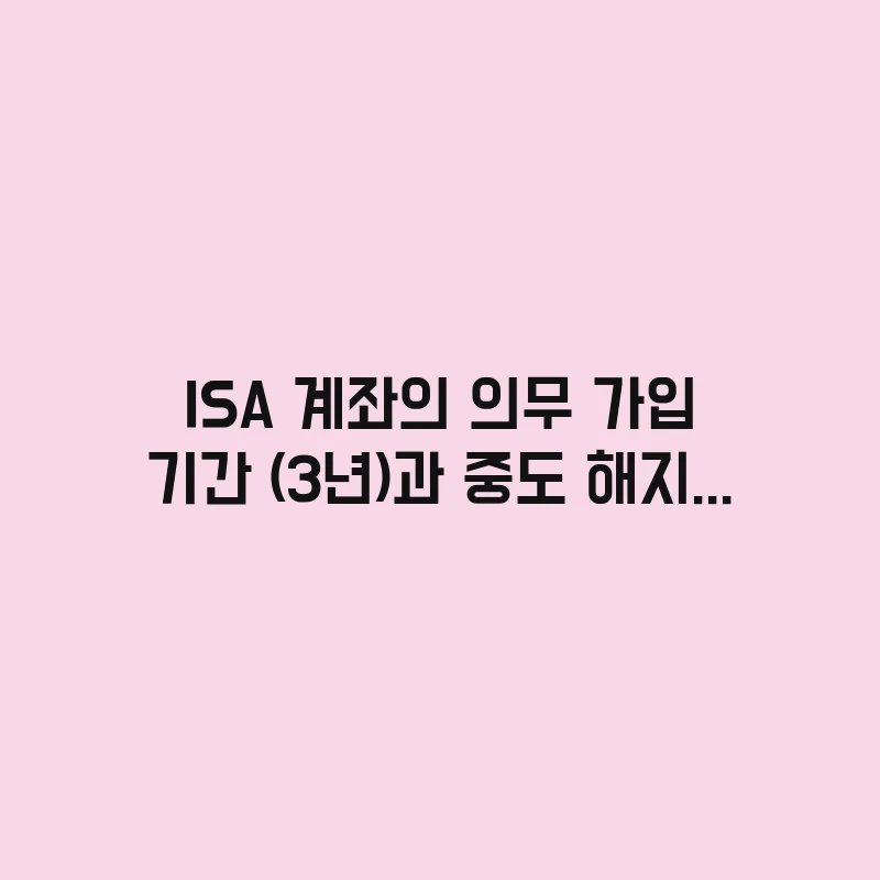 ISA 계좌 의무 가입 기간 3년의 이유를 분석합니다. 왜 3년을 채워야 하는지, 그리고 중도 해지 시 비과세 혜택이 사라지는 정책적 이유와 페널티의 작동 원리를 설명합니다. … 더 읽기.