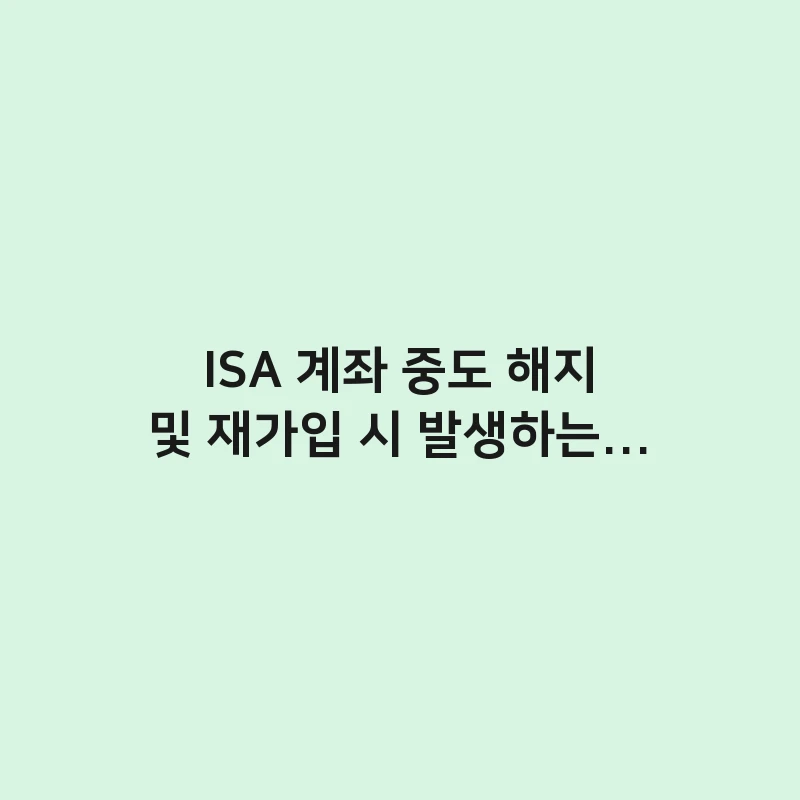 ISA 계좌 중도 해지 시 발생하는 문제점과 페널티를 총정리합니다. 3년 의무 기간을 못 채우면 비과세 혜택이 어떻게 사라지는지, 재가입은 언제 가능한지 모든 주의점을 알려드립니다. … 더 읽기.