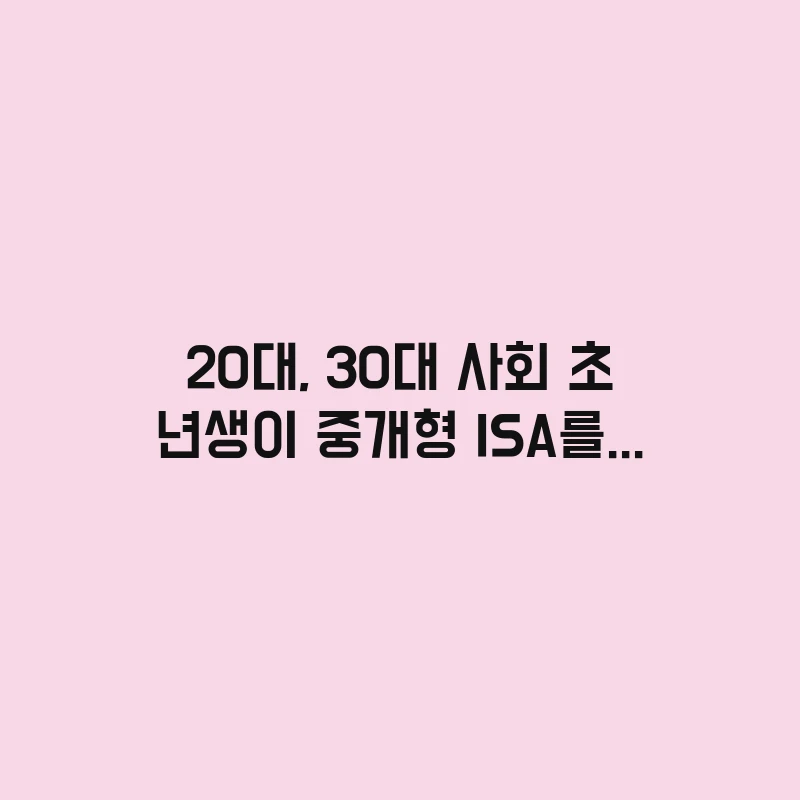 20대, 30대 사회 초년생이 중개형 ISA를 활용하여 소액으로 장기 투자하는 방법