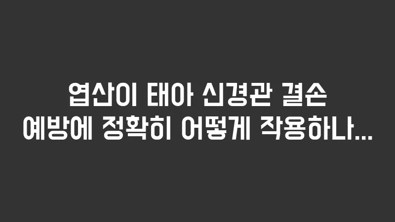 엽산 신경관 결손 예방 원리. 엽산(비타민 B9)이 임신 극초기 태아의 뇌와 척추 발달(신경관 닫힘)에 필수적인 DNA 합성과 세포 분열에 어떻게 작용하는지 심층 분석합니다. … 더 읽기.
