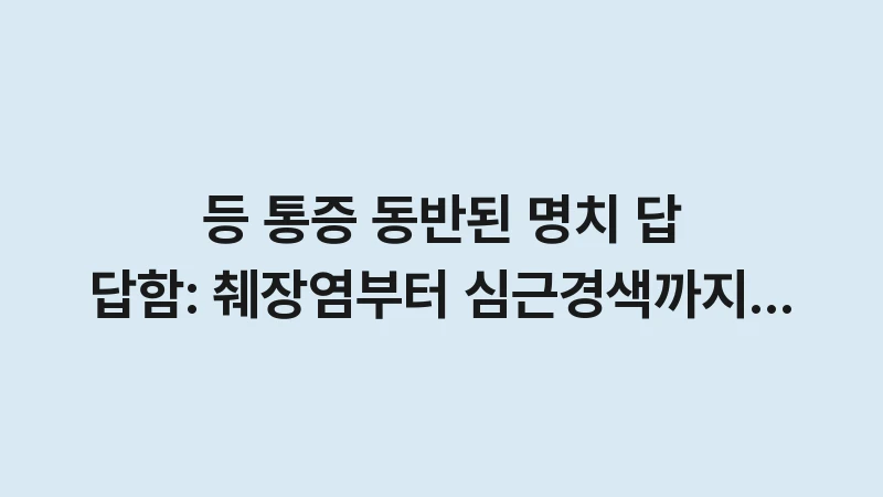 등 통증 동반된 명치 답답함 증상의 위험 신호를 2026년 최신 의학 데이터를 통해 분석했습니다. 단순 근육통과 췌장염, 심근경색, 대동맥 박리의 결정적 차이를 완벽 정리해 드립니다. … 더 읽기.