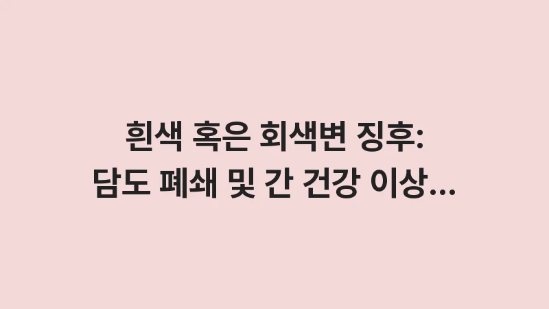 회색변 또는 흰색변 원인을 정확히 알고 계신가요? 찰흙 같은 색깔의 대변은 간, 담낭, 췌장 건강의 심각한 적신호일 수 있습니다. 담도 폐쇄부터 황달까지 전문가 시각에서 위험 징후를 정밀 분석했습니다. 2026년 최신 의학 데이터를 통해 긴급 상황을 판별하고 즉각 대처하는 법을 확인하세요. 내 몸의 조용한 비명을 놓치지 마세요. … 더 읽기.