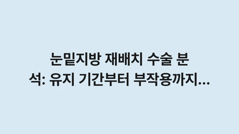 눈밑지방 재배치 수술 분석을 통해 유지 기간, 부작용, 시술 과정 등 모든 궁금증을 해소해 드립니다. 그림자 다크서클을 지우는 가장 확실한 수술적 선택의 기준과 전문가 데이터를 확인하세요. … 더 읽기.