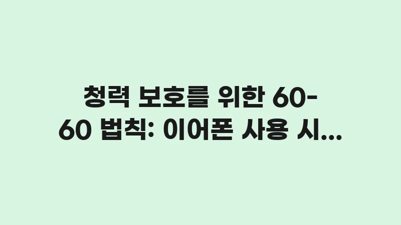 청력 보호를 위한 60-60 법칙을 통해 소음성 난청을 예방하는 가장 확실한 방법을 알려드립니다. 이어폰 볼륨과 사용 시간을 제한하는 과학적 원리와 2026년 최신 청각 건강 가이드를 상세히 분석했습니다. … 더 읽기.