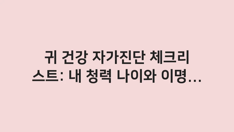 귀 건강 자가진단 체크리스트를 통해 내 청력 나이와 이명 위험도를 3분 만에 확인해보세요. 나이가 들면서 생기는 노인성 난청부터 이어폰 사용으로 인한 소음성 난청까지 예방하는 자가 점검표를 제안합니다. … 더 읽기.