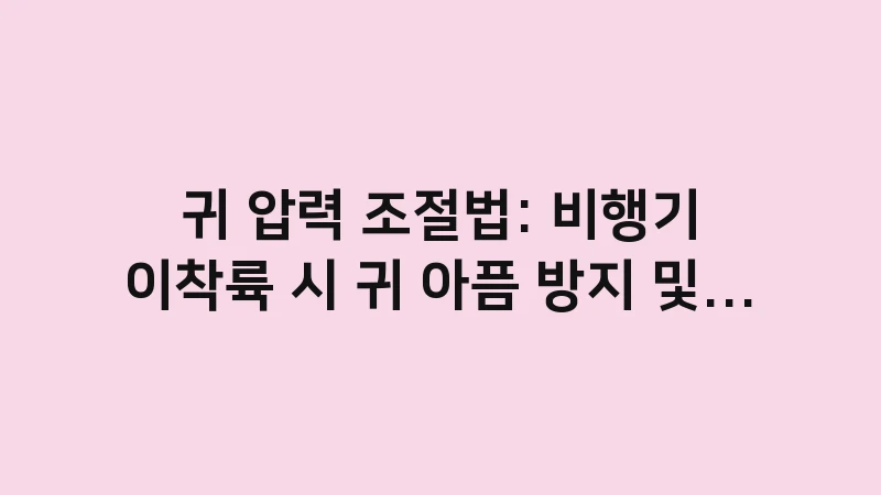 귀 압력 조절법, 비행기 이착륙 시 발생하는 귀 통증과 먹먹함을 즉시 해결하는 발살바 호흡법을 공개합니다. 귀의 압력을 평형으로 맞추는 과학적 원리와 주의사항을 2026년 최신 가이드로 정리했습니다. … 더 읽기.