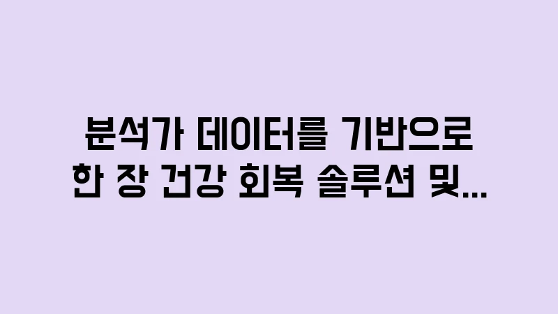 장 건강 회복 솔루션을 찾고 계신가요? 분석가 데이터를 기반으로 대변 상태를 황금색으로 만드는 실질적인 식단과 생활 습관 처방을 정리했습니다. 프로바이오틱스 선택 기준부터 장내 미생물 환경 개선법까지, 2026년 최신 과학적 근거를 바탕으로 장 건강을 근본적으로 되살리는 5단계 가이드를 확인하세요. 지금 바로 건강한 장을 위한 첫걸음을 시작하십시오. … 더 읽기.