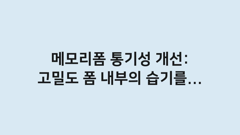 메모리폼 통기성 개선 솔루션! 고밀도 폼의 특성상 발생하는 열기와 습기 정체 현상을 해결하는 분석가 제안 가이드를 공개합니다. 2026년 최신 소재 데이터를 바탕으로 수면 중 체온 상승을 막고 매트리스 내부를 쾌적하게 유지하는 과학적인 관리 비법과 침구 조합을 지금 바로 확인하세요. … 더 읽기.