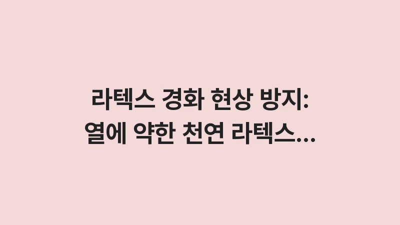 라텍스 경화 현상 방지 전략! 열에 약한 천연 라텍스 매트리스가 부서지거나 곰팡이가 생기는 원인을 정밀 분석하고, 수명을 15년까지 늘리는 전문가의 온도 관리법을 공개합니다. 2026년 최신 소재 데이터를 통해 고가의 라텍스를 망가뜨리지 않는 안전한 살균 및 위생 관리 노하우를 지금 바로 확인하세요. … 더 읽기.
