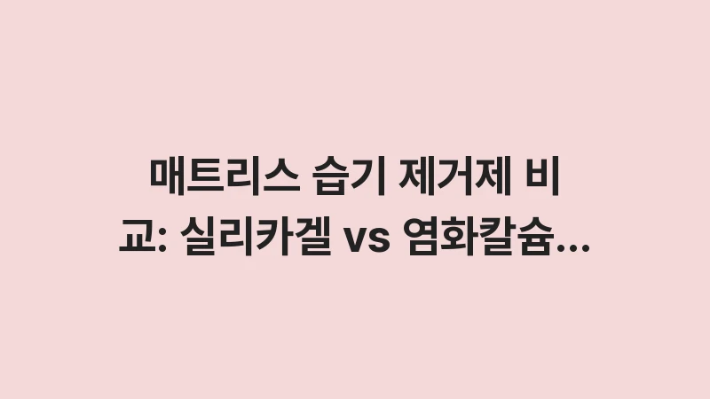 매트리스 습기 제거제 비교 분석! 실리카겔과 염화칼슘 중 매트리스 수명에 더 유리한 선택은 무엇일까요? 소재별 습기 흡착 데이터와 화학적 부식 위험성을 대조하여 최적의 제습 아이템을 추천합니다. 2026년 최신 위생 가이드를 통해 매트리스 곰팡이의 근본 원인인 습기를 완벽하게 차단하세요. … 더 읽기.