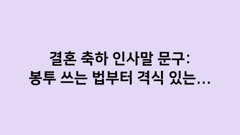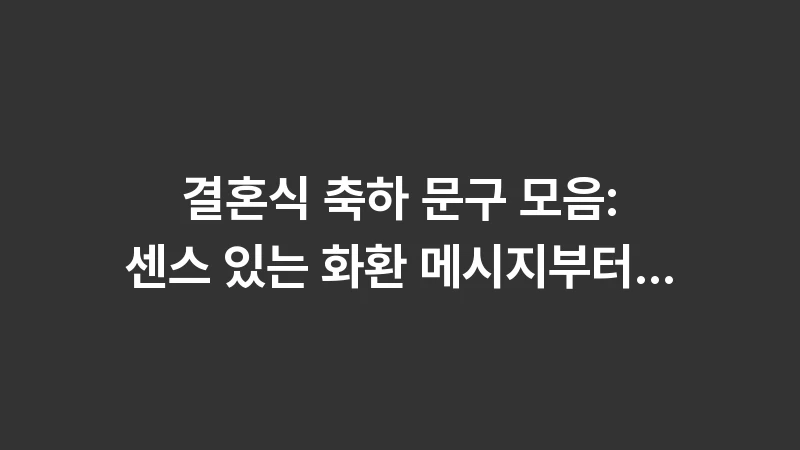 결혼 축하 인사말 문구, 어떤 상황에서도 빛나는 정중하고 따뜻한 메시지를 찾고 계시나요? 축의금 봉투 작성법부터 어르신, 지인들에게 보내는 격식 있는 인사말 템플릿을 완벽하게 정리했습니다. … 더 읽기.