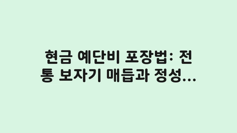 현금 예단비 포장법 정보를 찾으시나요? 전통 보자기 매듭부터 비단 봉투 선택, 신권 배치법까지 정성과 격식을 더하는 완벽한 포장 가이드를 정리해 드립니다. … 더 읽기.