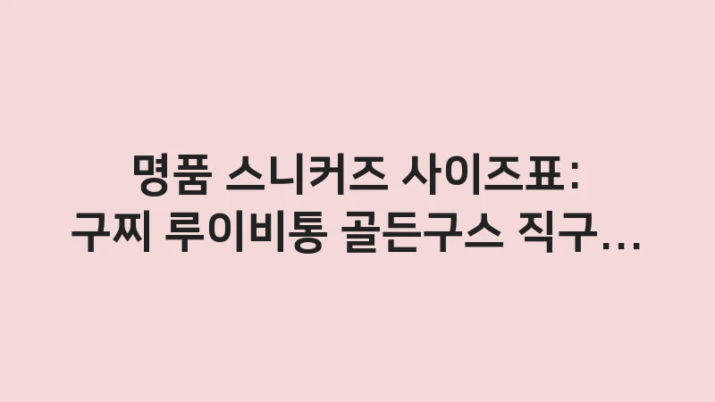 명품 스니커즈 사이즈표 완벽 분석! 구찌, 루이비통, 골든구스 등 하이엔드 브랜드의 독자적인 사이즈 체계와 이탈리아 규격을 한국 mm로 환산하는 법을 정리했습니다. 고가의 명품 신발 직구 시 실패 없는 선택을 위한 브랜드별 라스트 특징과 실측 팁을 지금 바로 확인하세요. … 더 읽기.