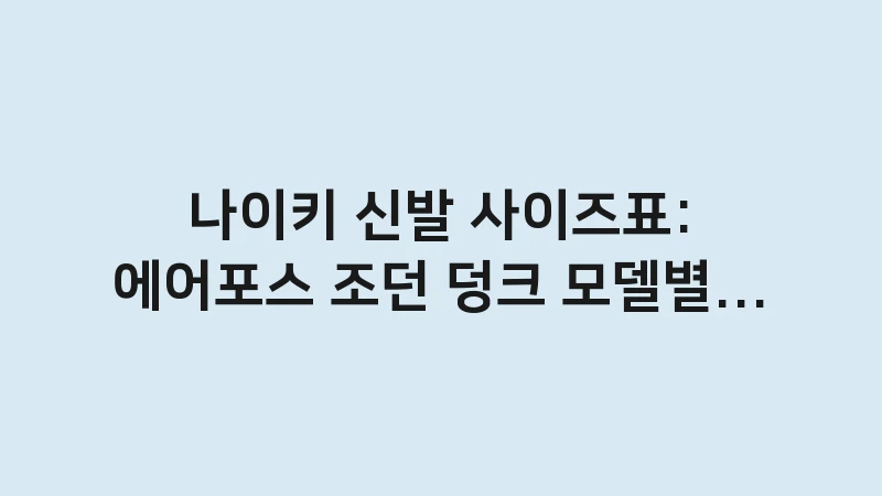 나이키 신발 사이즈표 완벽 분석! 에어포스 1, 조던, 덩크 등 인기 모델별 정사이즈 선택 팁과 반 사이즈 업이 필요한 이유를 정리했습니다. 미국(US), 유럽(EU), 한국(mm) 변환표는 물론, 발볼 좁은 나이키 신발을 편하게 신는 노하우를 지금 확인하여 사이즈 실패 없는 쇼핑을 시작하세요. … 더 읽기.