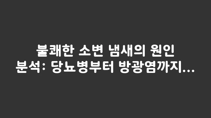 불쾌한 소변 냄새의 원인 분석을 통해 당뇨병, 방광염, 요로감염 등 의심되는 질환과 대처법을 상세히 정리했습니다. 달콤한 냄새부터 코를 찌르는 암모니아취까지 소변 냄새가 경고하는 우리 몸의 이상 징후를 분석했으니 건강이 걱정된다면 지금 바로 확인하세요. … 더 읽기.