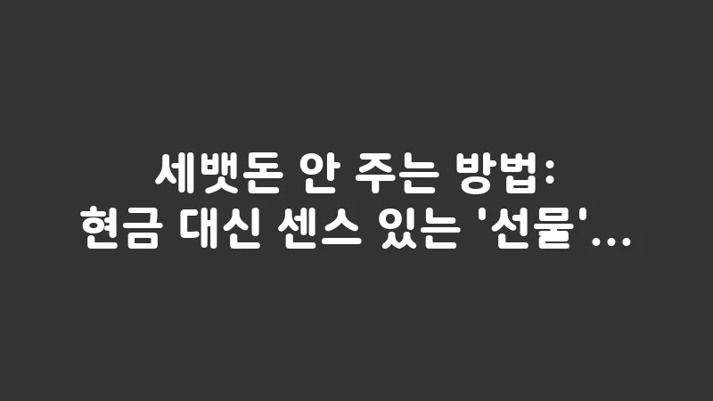세뱃돈 안 주는 방법이 궁금하세요? 현금 대신 센스 있는 ‘선물’로 대체하는 아이템 BEST 5를 추천합니다. 금액 부담은 줄이고 조카의 만족도는 높이는 연령별 맞춤 선물을 확인하세요. … 더 읽기.