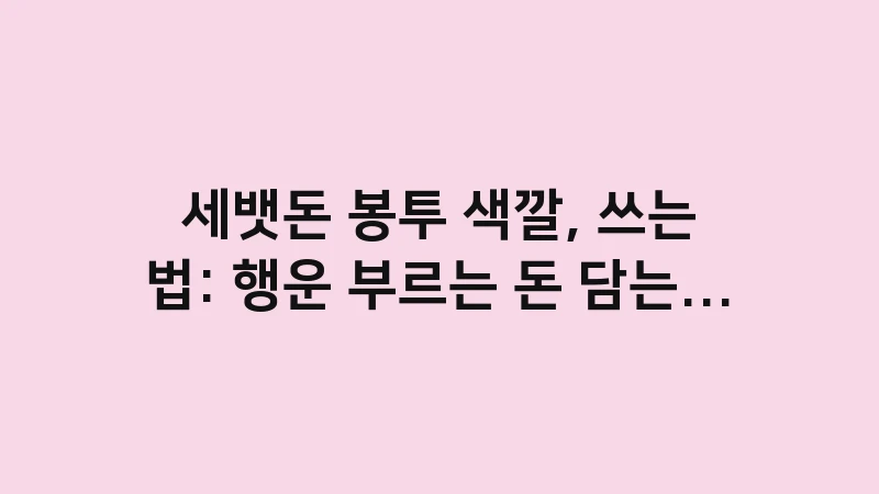 세뱃돈 봉투 색깔, 쓰는 법, 신권 준비 노하우를 공개합니다. 행운을 부르는 돈 담는 법부터 봉투에 써야 할 덕담 문구, 그리고 돈을 넣을 때 절대 피해야 할 실수 3가지까지 확인하세요. … 더 읽기.