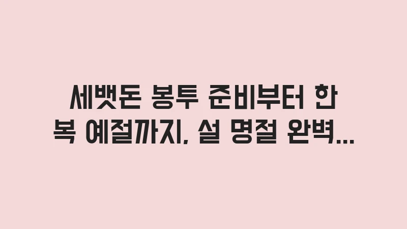 세뱃돈 봉투 준비부터 한복 예절까지, 설 명절 완벽 대비를 위한 체크리스트를 공개합니다. 새해 덕담, 친척 집 방문 매너, 복장 팁 등 설날 실수를 줄이는 모든 노하우를 확인하세요. … 더 읽기.