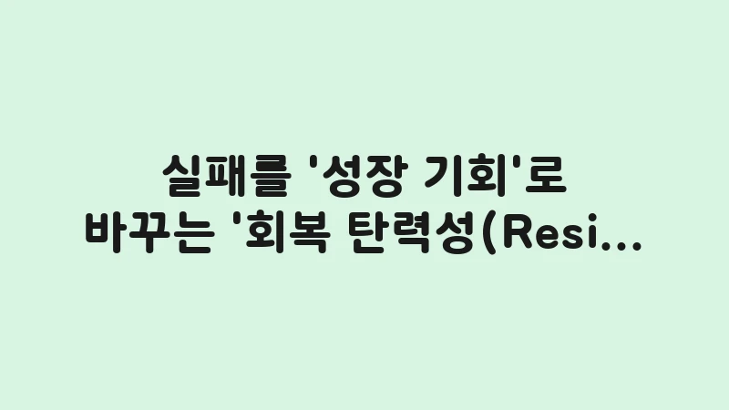 실패를 성장 기회로 바꾸는 회복 탄력성(Resilience) 기르는 훈련법을 공개합니다. 실수 후 좌절하는 대신 ‘Never Miss Twice’ 원칙과 ‘성장형 사고방식’으로 자기 대화를 전환하는 3단계 심리 훈련법을 전문가의 시선으로 제시합니다. 실패를 다음 성공의 발판으로 만드세요. … 더 읽기.