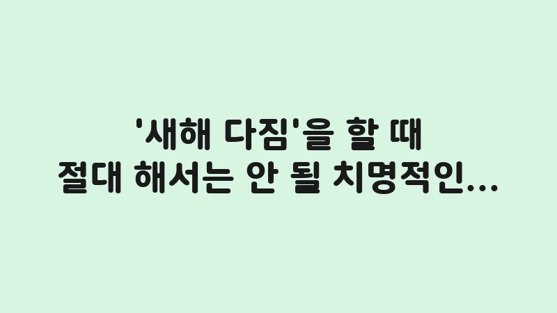 새해 다짐을 할 때 절대 해서는 안 될 치명적인 실수 5가지를 전문가가 공개합니다. ‘비현실적인 목표 설정’, ‘환경 통제 실패’, ‘완벽주의 함정’ 등 당신의 다짐을 무너뜨리는 근본 원인을 파악하고, 이를 영구적으로 회피하는 구체적인 행동 전략을 제시합니다. … 더 읽기.