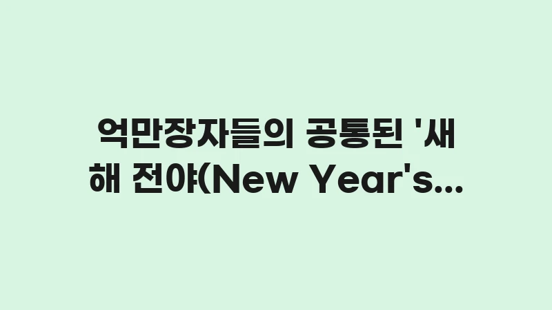 억만장자들의 공통된 새해 전야 목표 준비 루틴을 공개합니다. 단순 파티 대신 지난 한 해를 돌아보고 다음 목표를 설계하는 ‘전략적 루틴’의 3가지 핵심 요소를 담았습니다. 성공적인 사람들의 마인드셋을 습득하고, 2026년을 가장 효율적으로 시작할 수 있는 구체적인 방법을 알려드립니다. … 더 읽기.