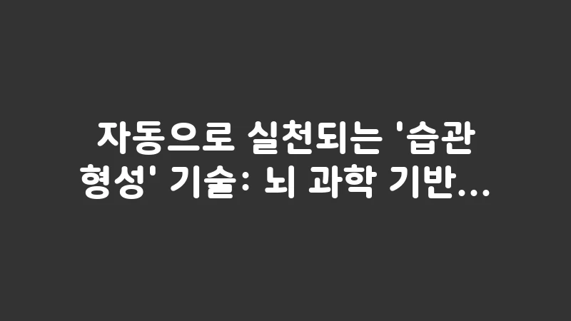 자동으로 실천되는 습관 형성 기술! 뇌 과학 기반 루틴 설계로 작심삼일을 완벽하게 끝내는 방법을 공개합니다. 2분 규칙, 습관 고리(Habit Loop) 해체 및 재설계 전략, 그리고 하루 생산성을 2배 높이는 골든 타임 활용법까지 전문가가 상세히 알려드립니다. … 더 읽기.
