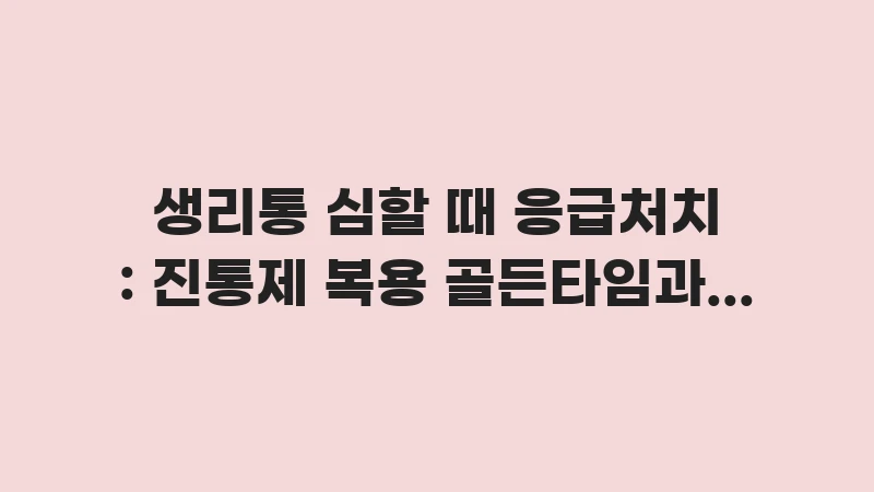 갑자기 찾아온 극심한 생리통 때문에 식은땀을 흘리며 침대 위를 굴러본 경험이 있으신가요? 많은 여성이 통증이 최고조에 달했을 때야 비로소 약을 찾지만, 사실 생리통 관리는 ‘타이밍’이 전부라고 해도 과언이 아닙니다. 약을 먹어도 효과가 없다면 그것은 약의 문제가 아니라 복용 시점의 문제일 가능성이 큽니다.
