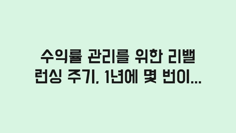 수익률 관리 리밸런싱 주기: ‘시간 기준’ vs ‘비율 기준’ 황금 주기