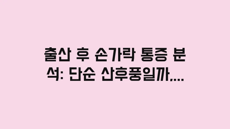 출산 후 손가락 통증 분석: 단순 산후풍일까, 관절염의 시작일까?