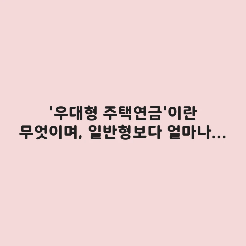 이 글에서는 우대형 주택연금이란 무엇이며, 가입 조건은 어떻게 되는지, 그리고 일반형과 비교해 실제 수령액은 얼마나 차이가 나는지 자세히 비교 분석해 드립니다.